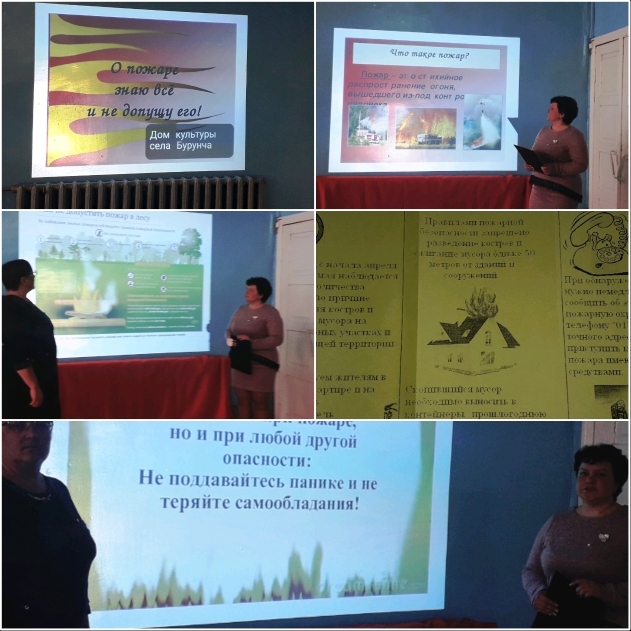 Сельские учреждения культуры активно осваивают новые формы и методы работы в режиме самоизоляции: проводят репетиции и матер-классы в режиме онлайн, записывают аудиоверсии празднования юбилейного Дня Победы, участвуют во всероссийских патриотических акциях: #Победный май, «Радость Победы» «Георгиевская ленточка», занимаются изготовлением портретов для «Бессмертного полка» С 27 апреля по 4 мая Дом культуры села Бурунча продолжил работу над созданием «Бессмертного полка» онлайн, его загрузили на сайте Одноклассники в группе Дом культуры села Бурунча. В рамках пожарной безопасности ДК с.Бурунча 29 апреля подготовили фотомероприятие: «О пожаре знаю всё и не допущу его».